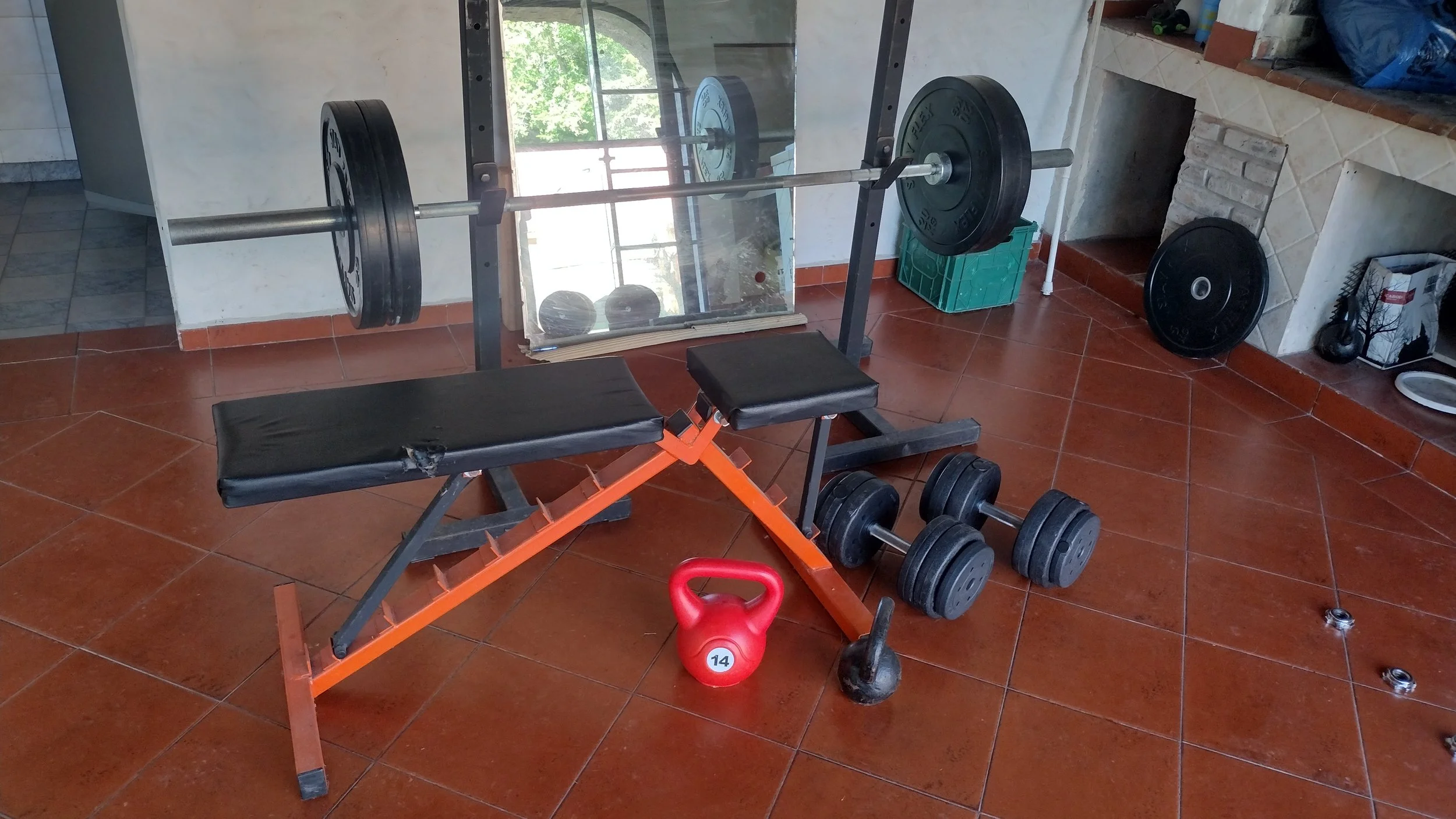 Además hay un quincho (casi otra casa) con tremenda parrilla, aire acondicionado, bacha, baño y otra habitación con cama doble. También un mini-gym si te gusta entrenar con barra, banco, pesas rusas, mancuera, colchoneta, anillos y barra de dominadas. Hay un horno de barro también.